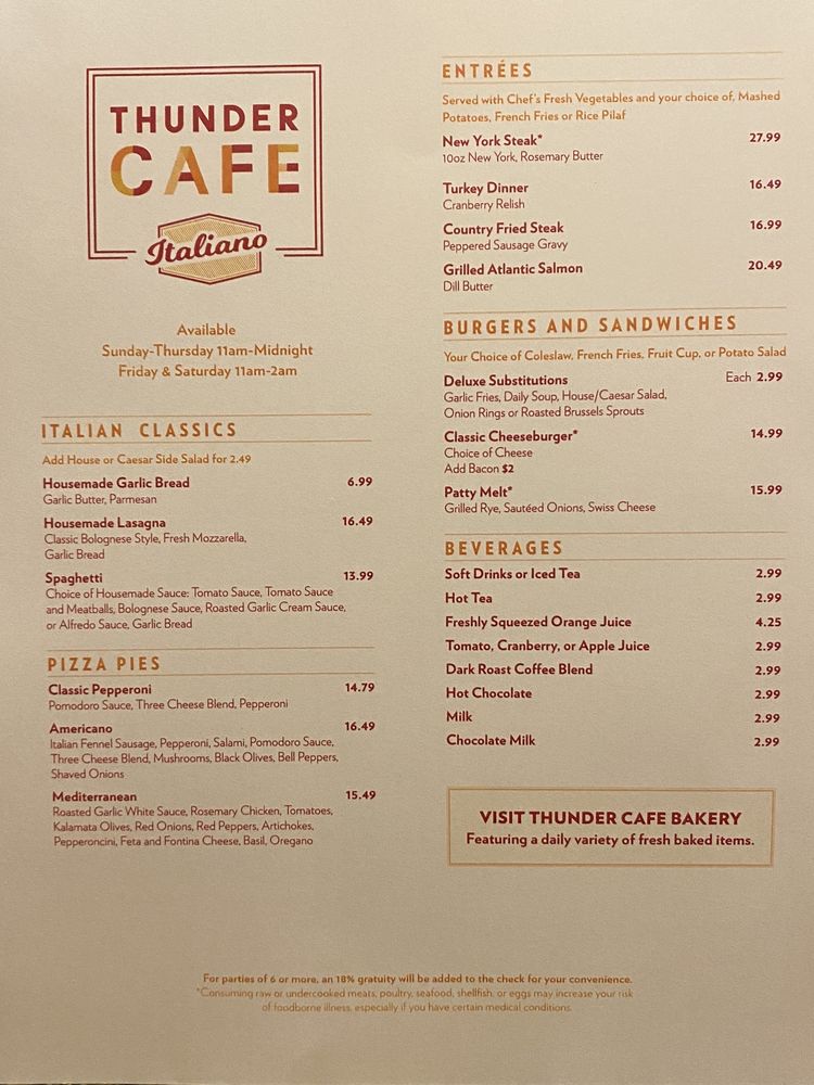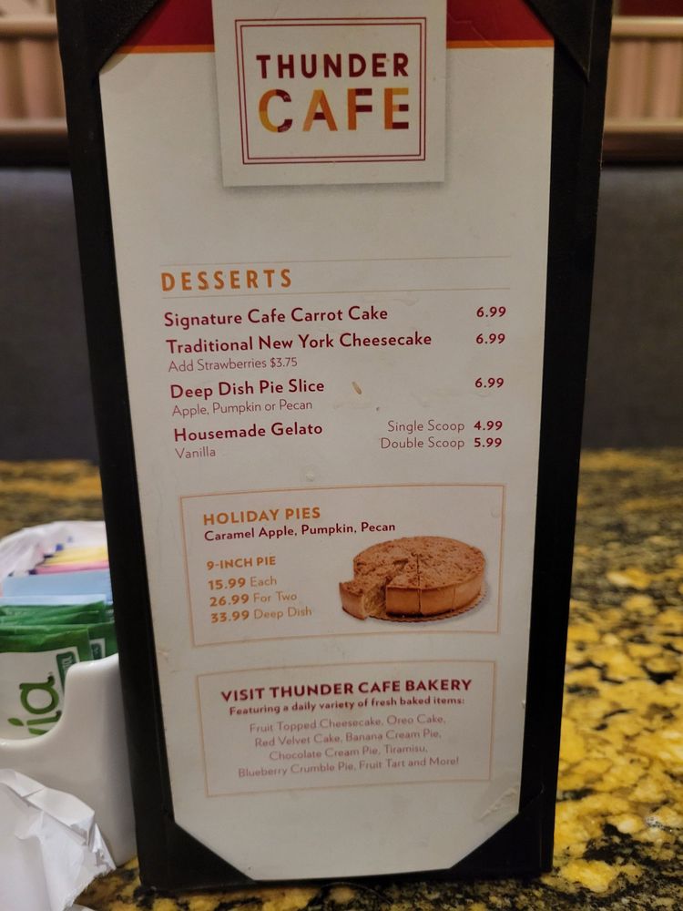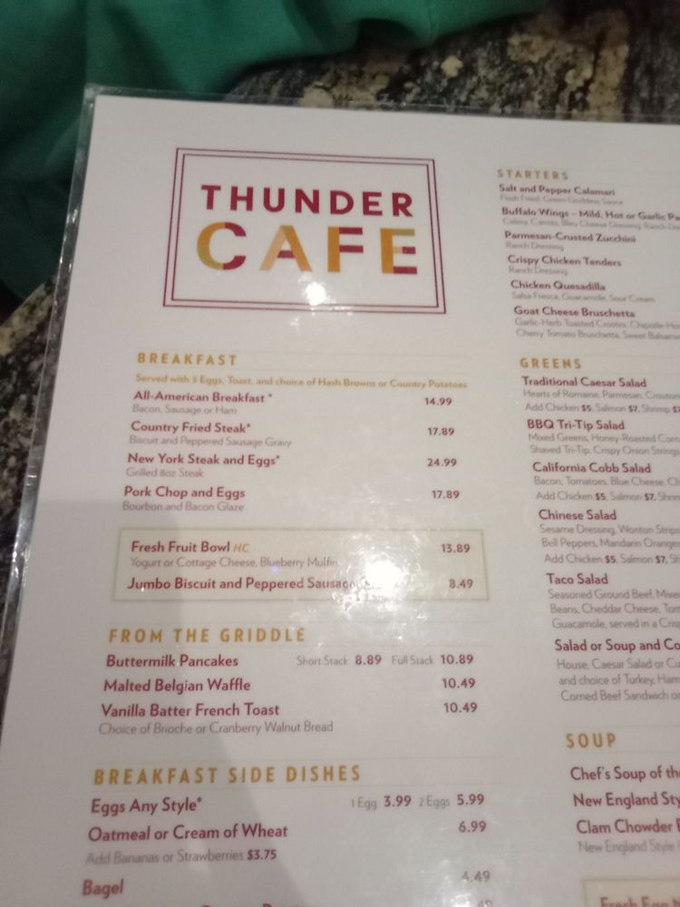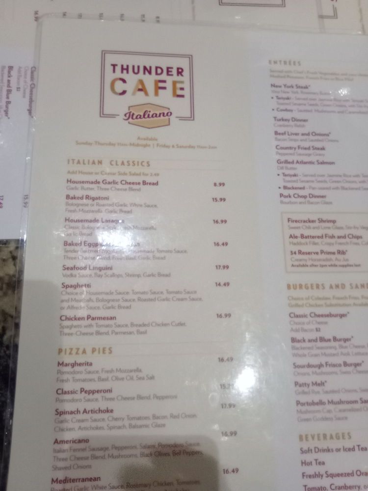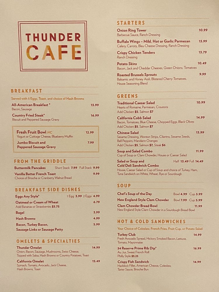 Introducing Thunder Cafe, located at Thunder Valley Casino Resort in Lincoln, CA. This cafe offers a variety of options for breakfast, brunch, lunch, dinner, and even late-night cravings. With a range of utilities including reservation options, takeout, delivery, vegan choices, and wheelchair accessibility, Thunder Cafe caters to a diverse clientele. Customers rave about the friendly and efficient service, particularly mentioning standout dishes like the chicken fried steak, prime rib, taco salad, and sandwiches. The cafe's atmosphere is casual and family-friendly, making it a great spot for groups and kids. The dessert options may be on the sweeter side for some, but the fruit tart and sandwiches receive high praise. Whether you're looking for a hearty meal before a show at The Venue or a quick bite during a casino visit, Thunder Cafe offers a satisfying dining experience.